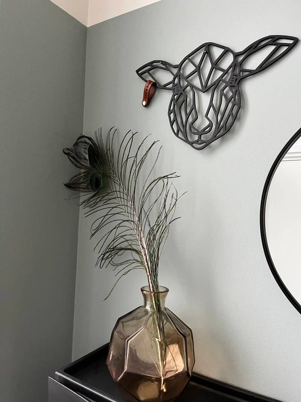 Wil je Schaap aan de muur ophangen? Wij hebben hier voor geen bevestingen mee geleverd. Maar denk aan een mooie stalennagel in de muur, hier kan hij aangehangen worden.